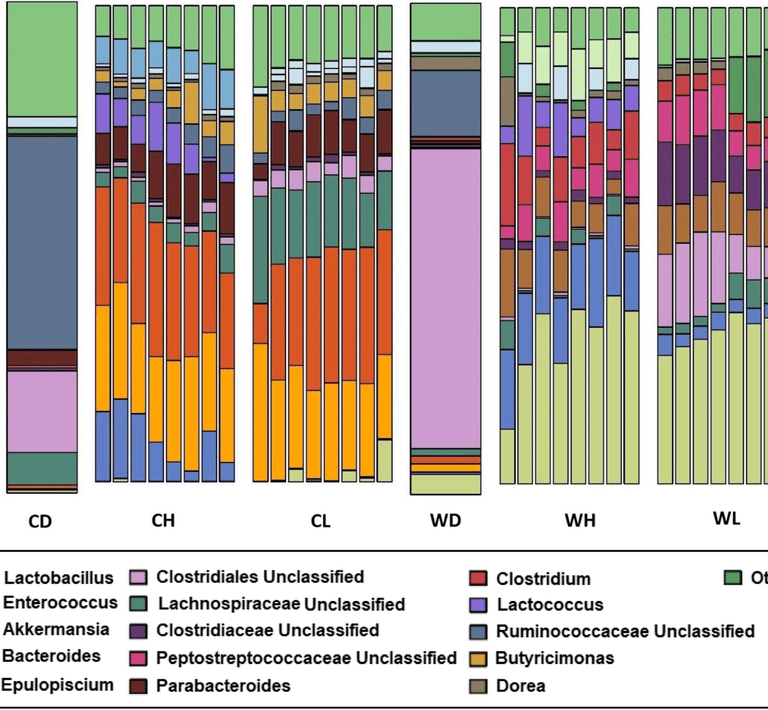 Comparación entre condiciones o tratamientos: Analizamos estadísticamente las diferencias microbianas entre grupos (por ejemplo, control vs tratamiento, sano vs enfermo, antes y después de intervención).